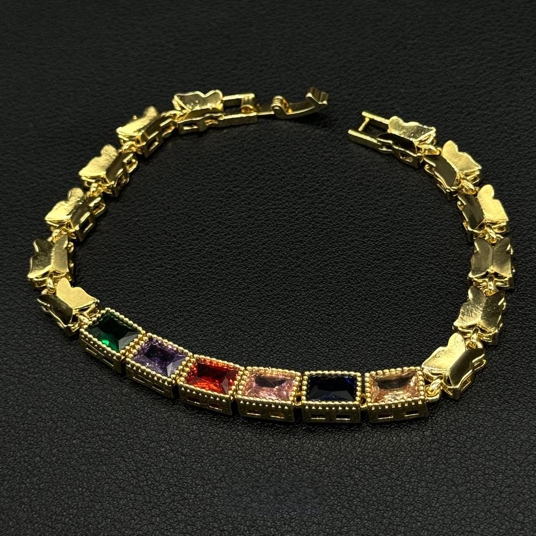 A joyful celebration of color and nature, our Rainbow Butterfly Tennis Bracelet is designed to add a touch of whimsical elegance to any look. This enchanting piece features a vibrant parade of emerald-cut, 5A grade zircons, each representing a different hue of the rainbow. These brilliant gems are linked by a chain of intricately detailed butterflies, creating a design that's both playful and luxurious.