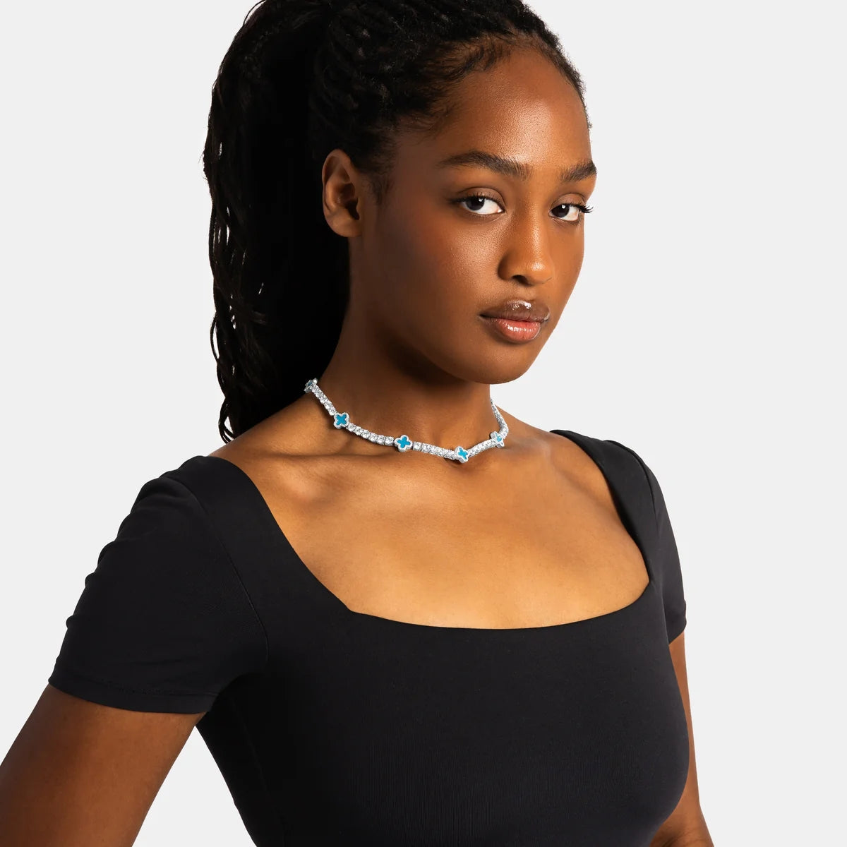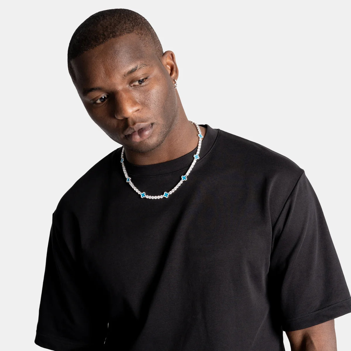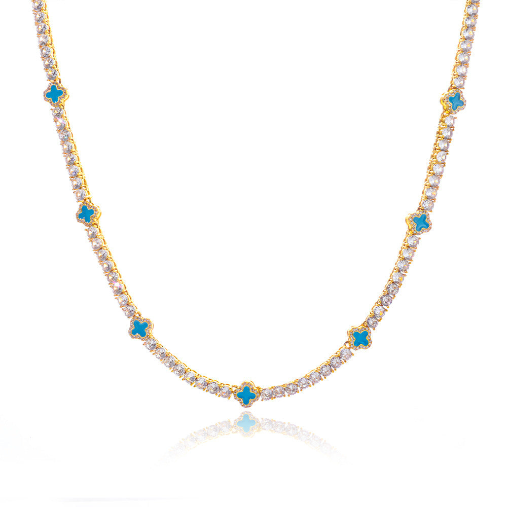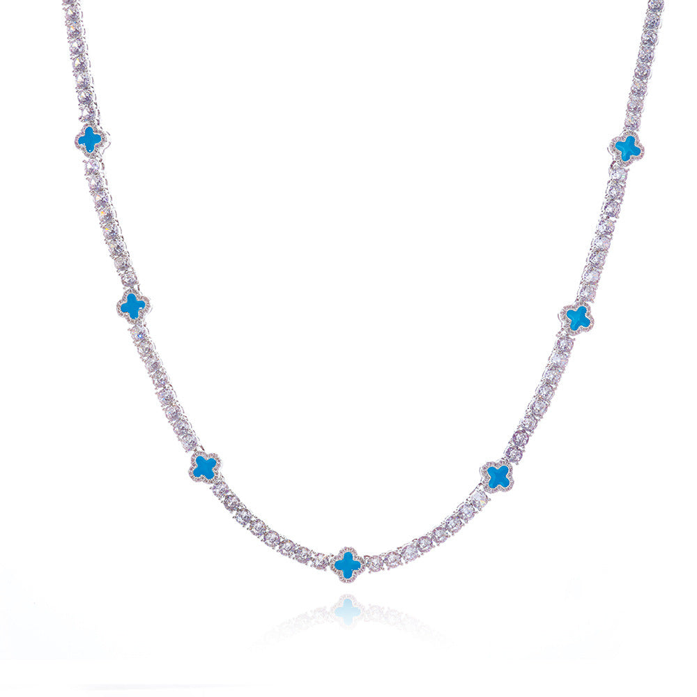 A modern icon of luck and luxury, the vivigleam Iced Clover Tennis Chain masterfully fuses two classic designs into one unforgettable statement piece. A brilliant, 4mm tennis chain, hand-set with flawless 5A CZ stones, is punctuated by bold, black enamel four-leaf clover stations for a captivating, high-contrast look.